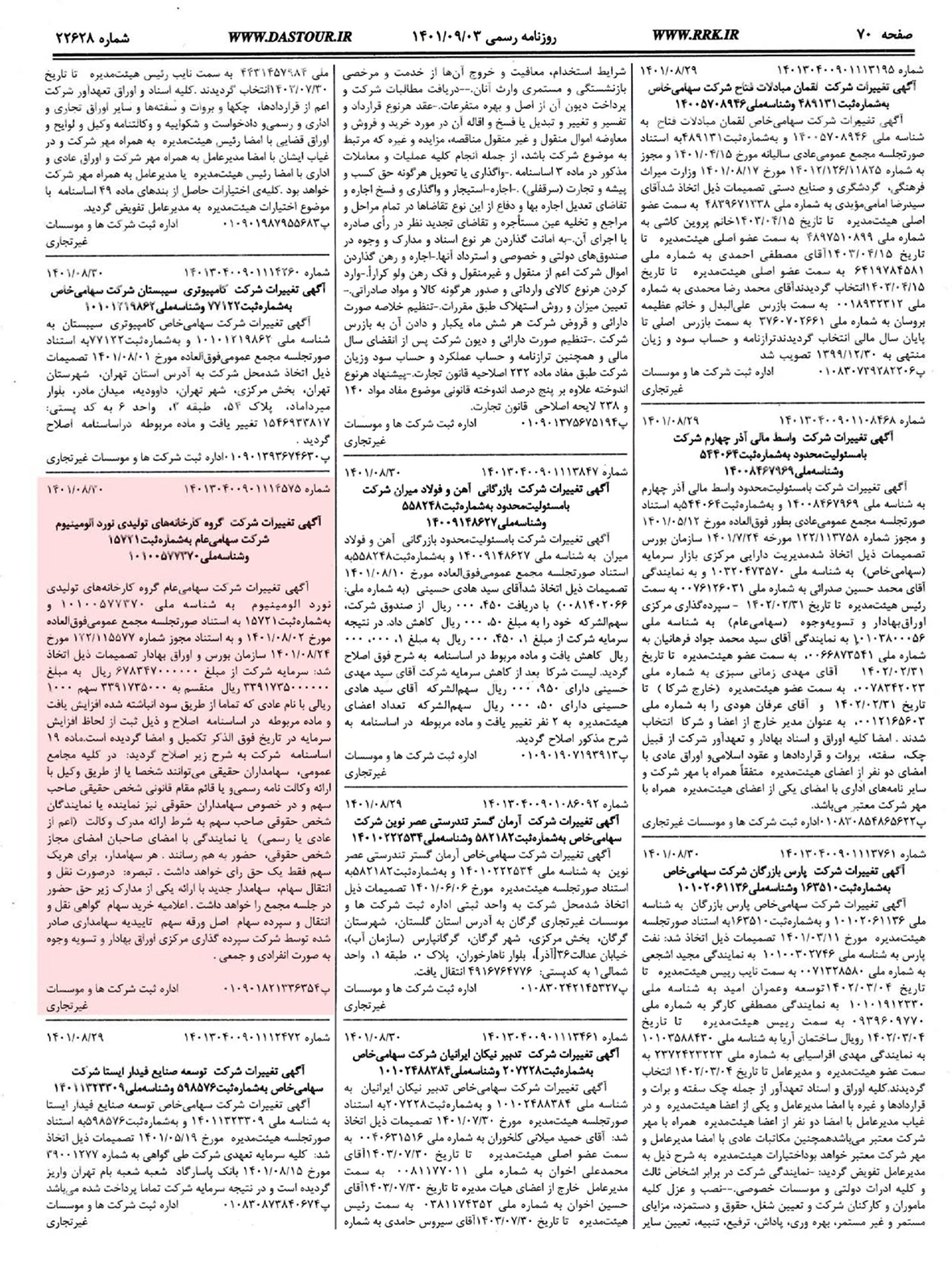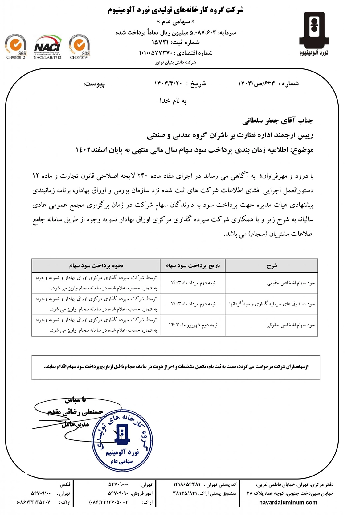 نامه ها و اطلاعیه های مربوط به سهام و سهامداران