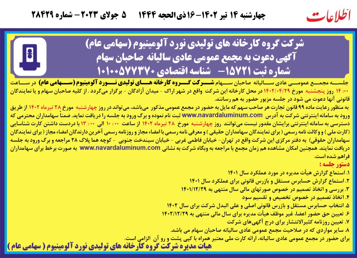 ثبت تغییرات شرکت گروه کارخانه های نوردآلومینیوم در روزنامه رسمی