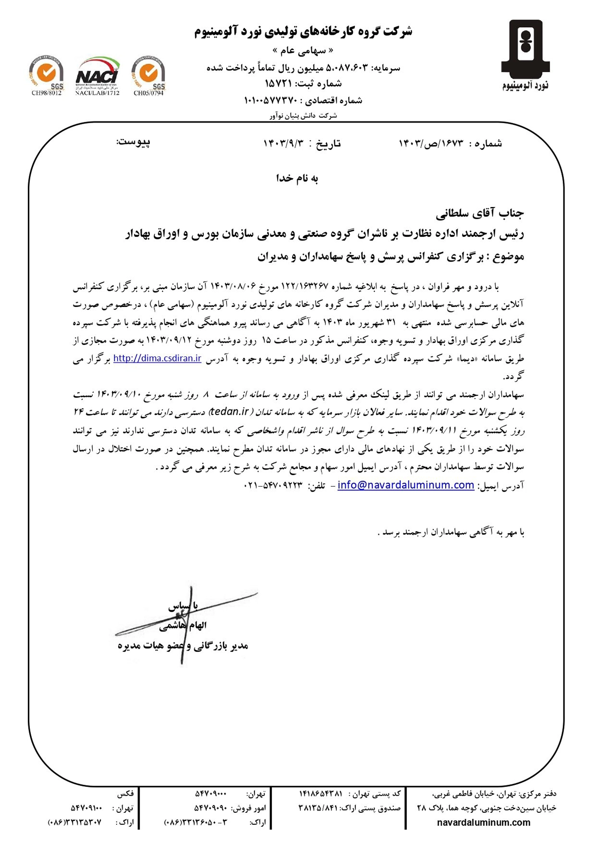 برگزاری کنفرانس پرسش و پاسخ سهامداران و مدیران